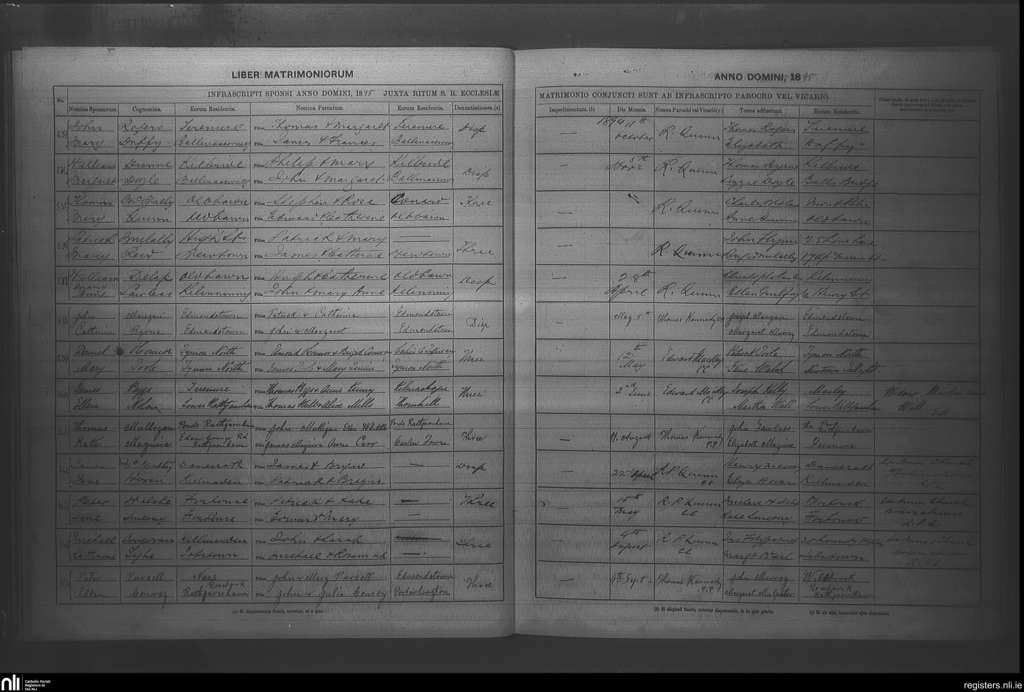 Rathfarnham; County of Dublin; Archdiocese of Dublin. Marriages, Oct. 1894 to Sep. 1895