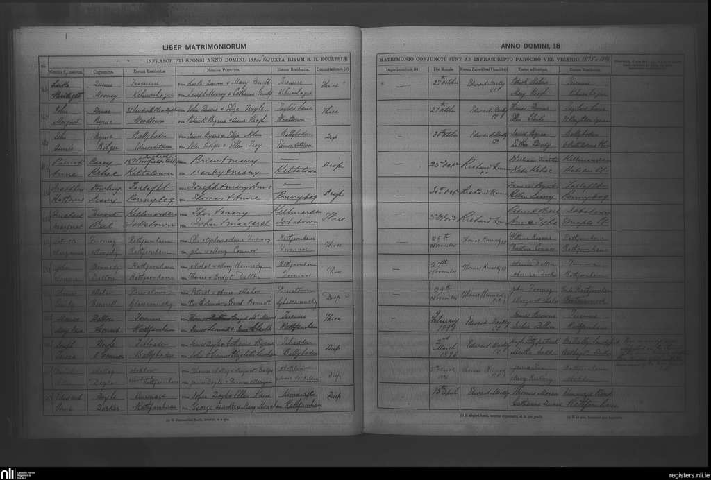 Rathfarnham; County of Dublin; Archdiocese of Dublin. Marriages, Oct. 1895 to Apr. 1896