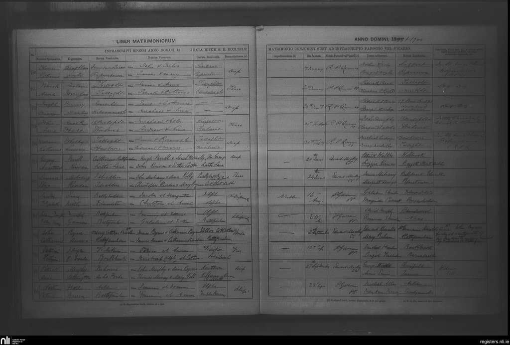 Rathfarnham; County of Dublin; Archdiocese of Dublin. Marriages, Jan. 1900 to Sep. 1900