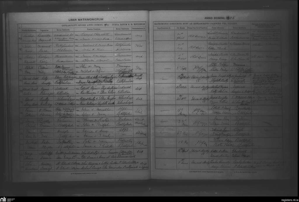 Rathfarnham; County of Dublin; Archdiocese of Dublin. Marriages, Apr. 1906 to June 1907