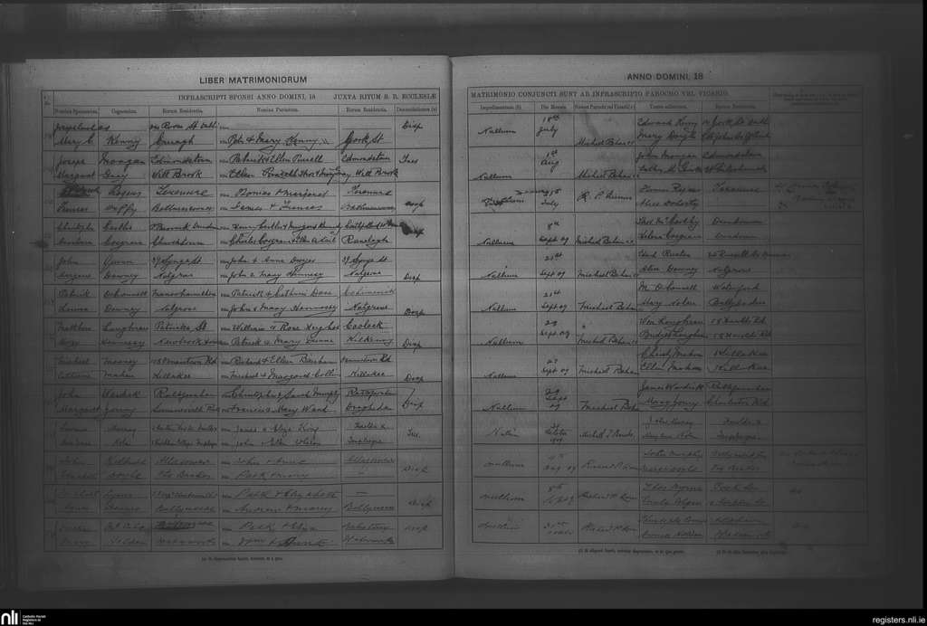 Rathfarnham; County of Dublin; Archdiocese of Dublin. Marriages, July 1909 to Oct. 1909
