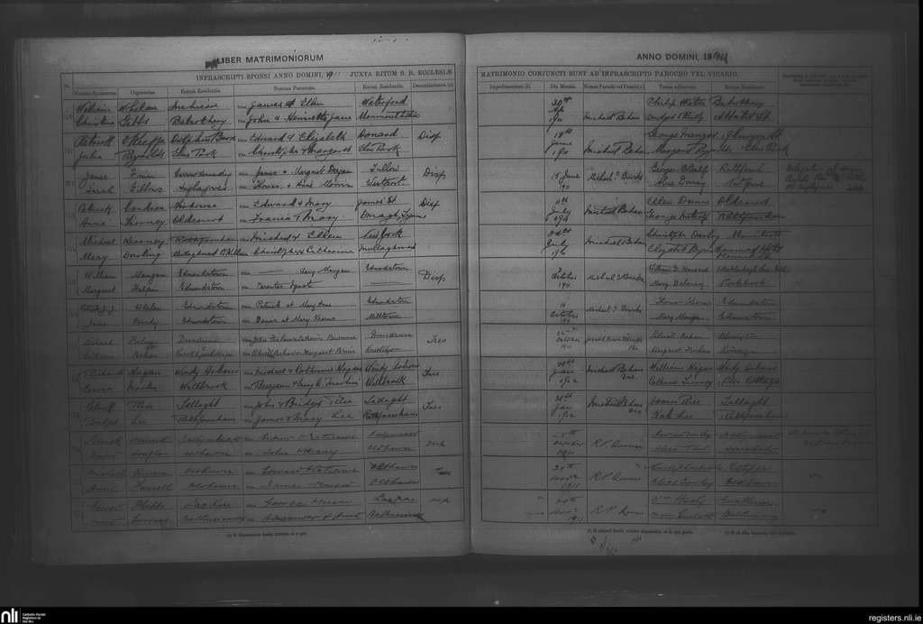 Rathfarnham; County of Dublin; Archdiocese of Dublin. Marriages, Apr. 1911 to Jan. 1912