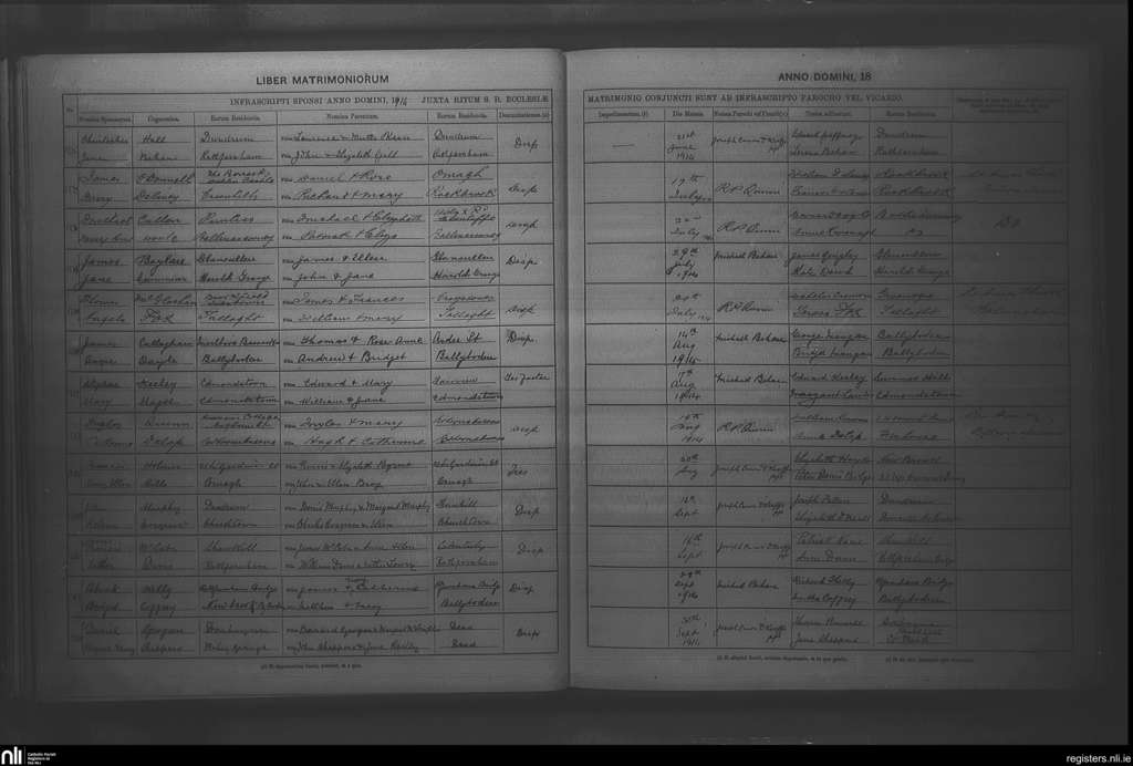 Rathfarnham; County of Dublin; Archdiocese of Dublin. Marriages, June 1914 to Sep. 1914