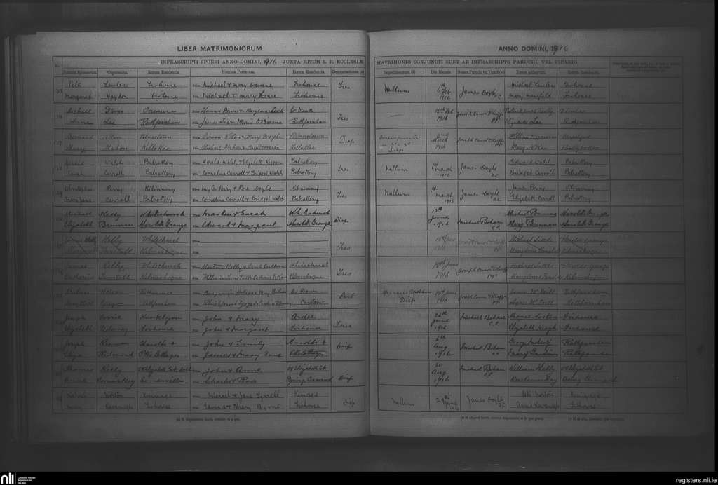Rathfarnham; County of Dublin; Archdiocese of Dublin. Marriages, Feb. 1916 to Aug. 1916