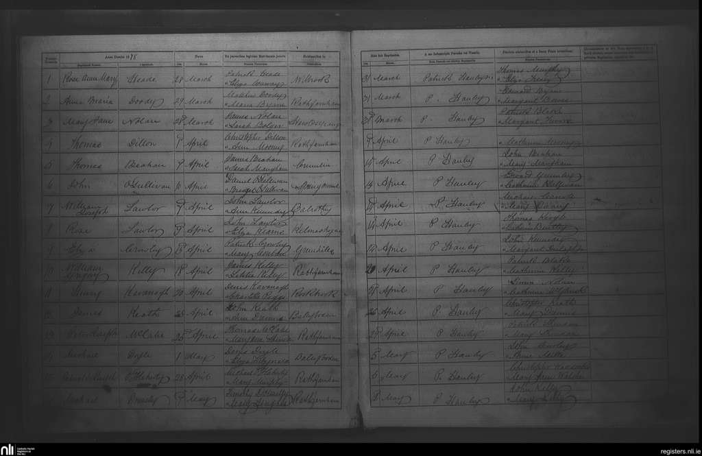 Rathfarnham; County of Dublin; Archdiocese of Dublin. Baptisms, Mar. 1878 to May 1878