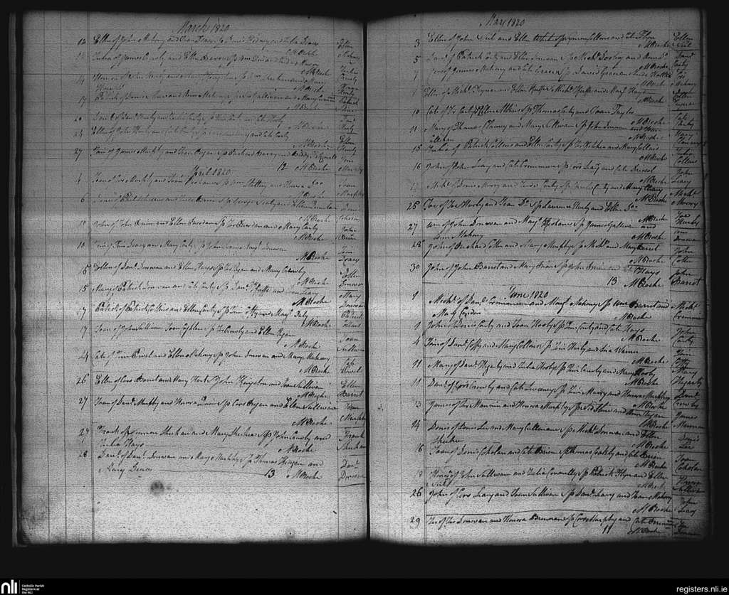 Desertserges; County of Cork; Diocese of Cork and Ross. Baptisms, Mar. 1820 to June 1820