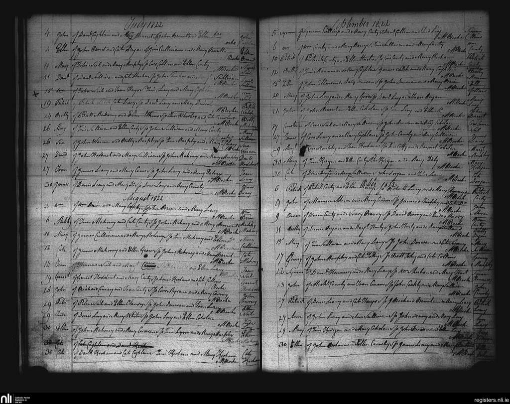 Desertserges; County of Cork; Diocese of Cork and Ross. Baptisms, July 1822 to Oct. 1822