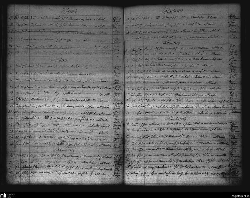Desertserges; County of Cork; Diocese of Cork and Ross. Baptisms, July 1824 to Nov. 1824