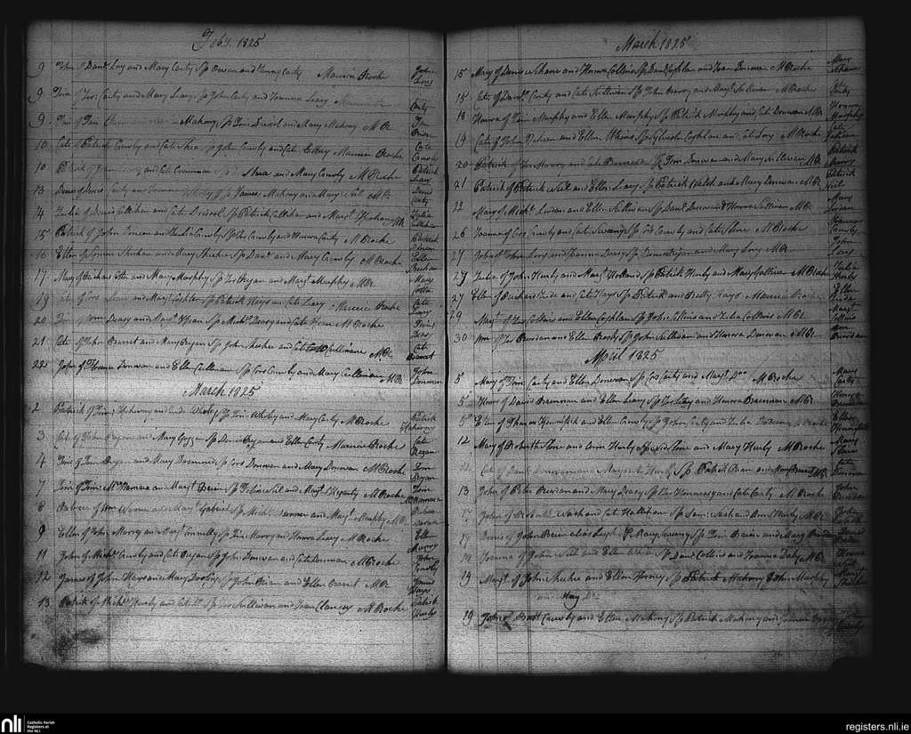 Desertserges; County of Cork; Diocese of Cork and Ross. Baptisms, Feb. 1825 to Apr. 1825