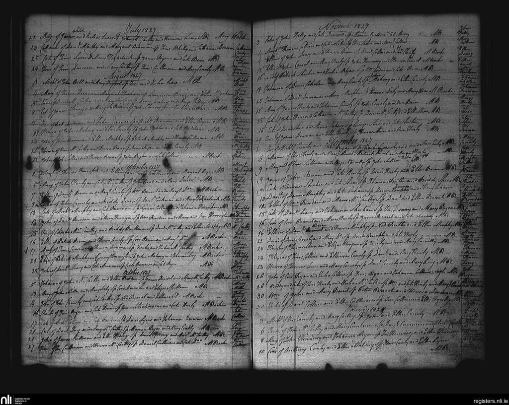 Desertserges; County of Cork; Diocese of Cork and Ross. Baptisms, July 1827 to Jan. 1828