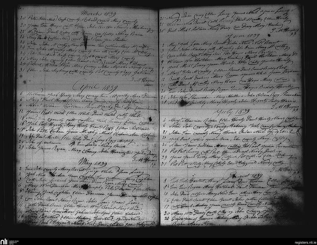 Desertserges; County of Cork; Diocese of Cork and Ross. Baptisms, Mar. 1839 to Aug. 1839