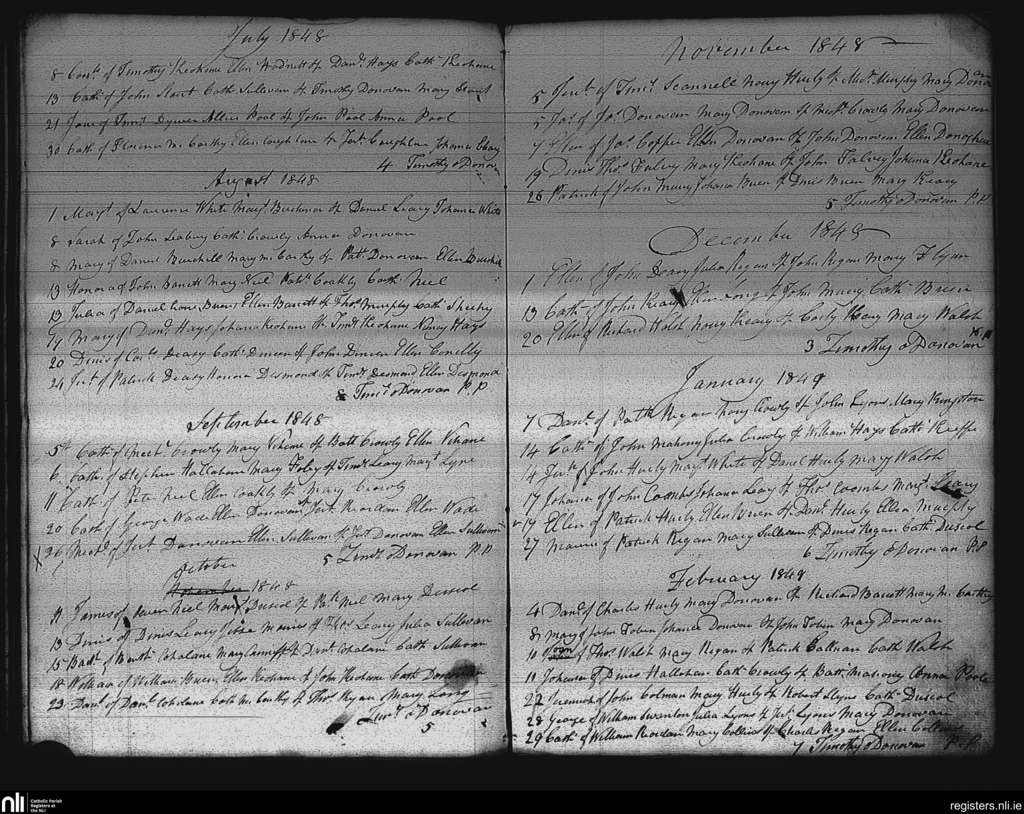 Desertserges; County of Cork; Diocese of Cork and Ross. Baptisms, July 1848 to Feb. 1849