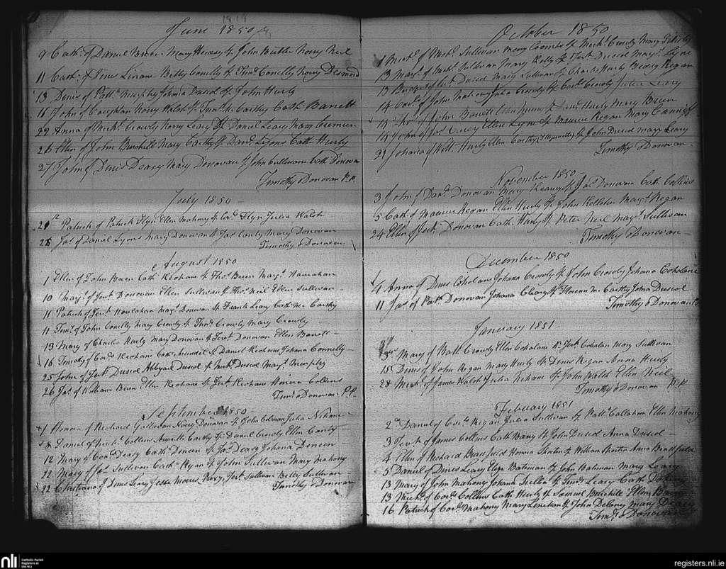 Desertserges; County of Cork; Diocese of Cork and Ross. Baptisms, June 1850 to Feb. 1851