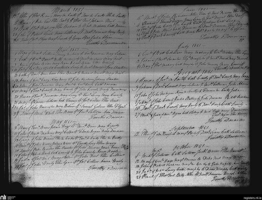 Desertserges; County of Cork; Diocese of Cork and Ross. Baptisms, Mar. 1851 to Oct. 1851