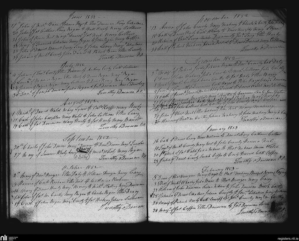 Desertserges; County of Cork; Diocese of Cork and Ross. Baptisms, June 1852 to Feb. 1853