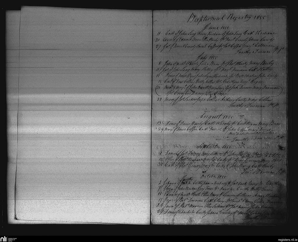 Desertserges; County of Cork; Diocese of Cork and Ross. Baptisms, June 1855 to Oct. 1855