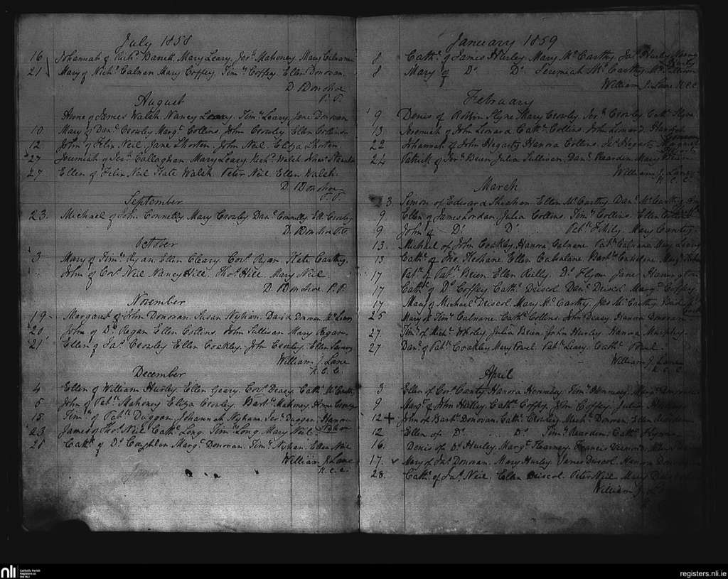Desertserges; County of Cork; Diocese of Cork and Ross. Baptisms, July 1858 to Apr. 1859