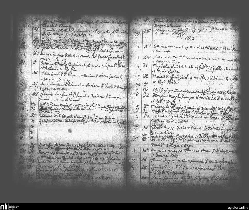 St. Andrew's, Dublin city; County of Dublin; Archdiocese of Dublin. Baptisms, Nov. 1742 to Dec. 1742