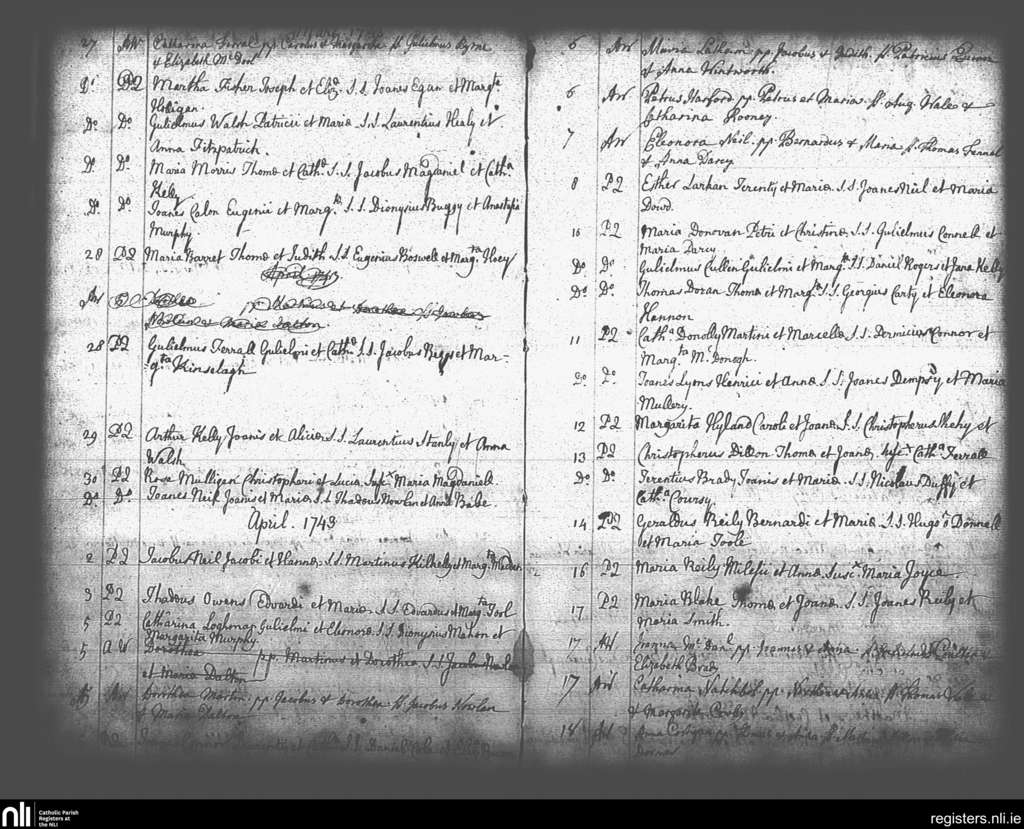 St. Andrew's, Dublin city; County of Dublin; Archdiocese of Dublin. Baptisms, Mar. 1743 to Apr. 1743
