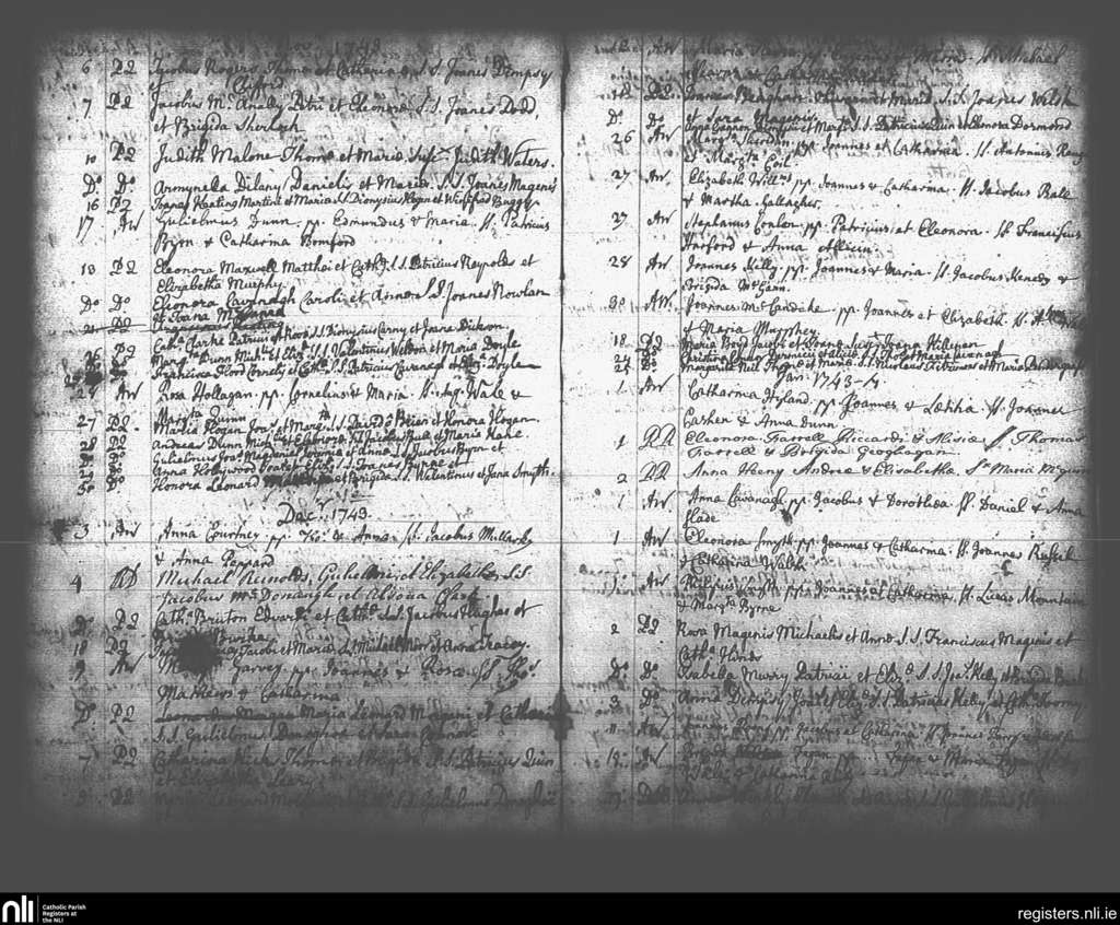 St. Andrew's, Dublin city; County of Dublin; Archdiocese of Dublin. Baptisms, Nov. 1743 to Jan. 1744