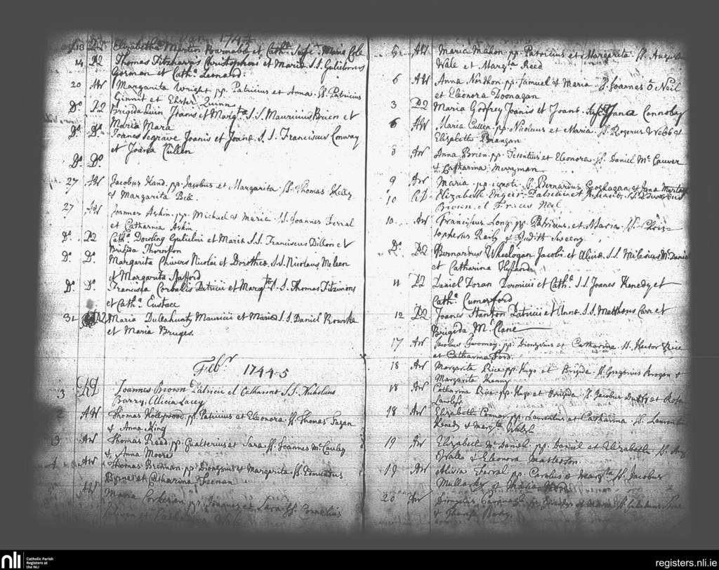 St. Andrew's, Dublin city; County of Dublin; Archdiocese of Dublin. Baptisms, Jan. 1745 to Feb. 1745