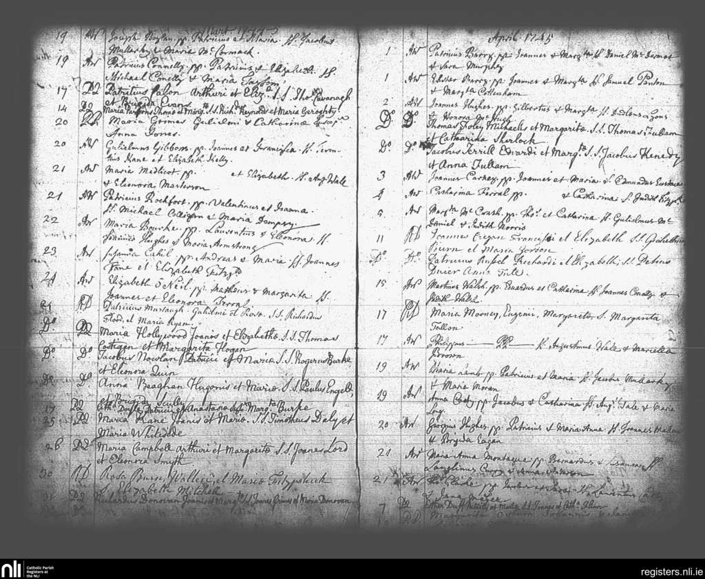 St. Andrew's, Dublin city; County of Dublin; Archdiocese of Dublin. Baptisms, Mar. 1745 to Apr. 1745