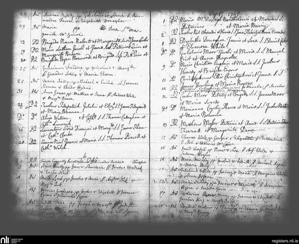 St. Andrew's, Dublin city; County of Dublin; Archdiocese of Dublin. Baptisms, Aug. 1745 to Sep. 1745