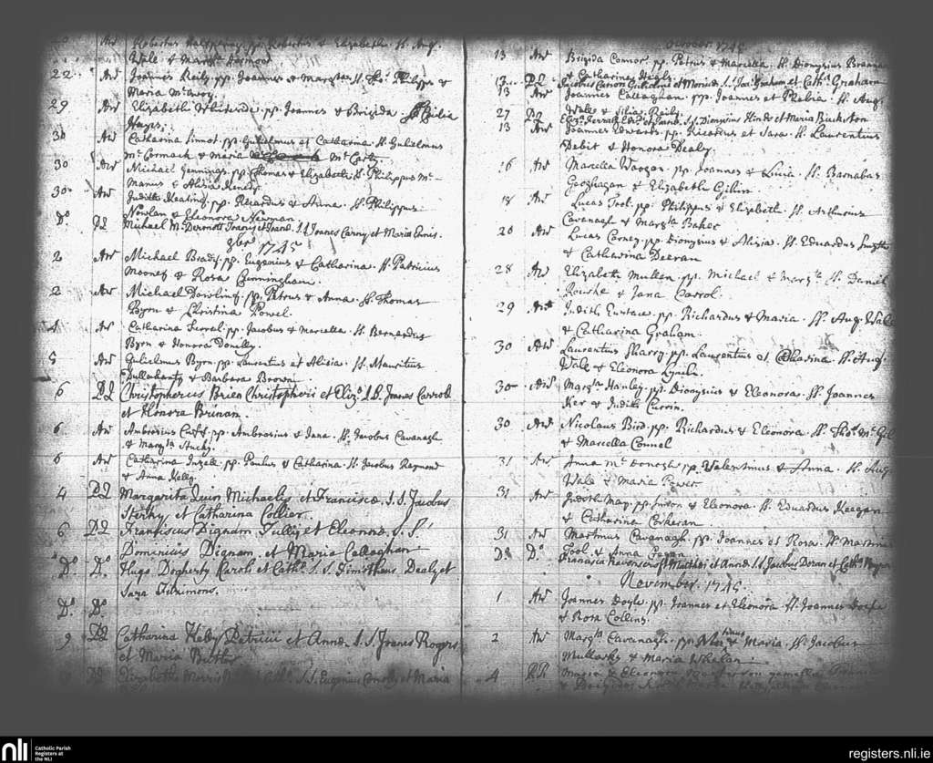 St. Andrew's, Dublin city; County of Dublin; Archdiocese of Dublin. Baptisms, Sep. 1745 to Nov. 1745