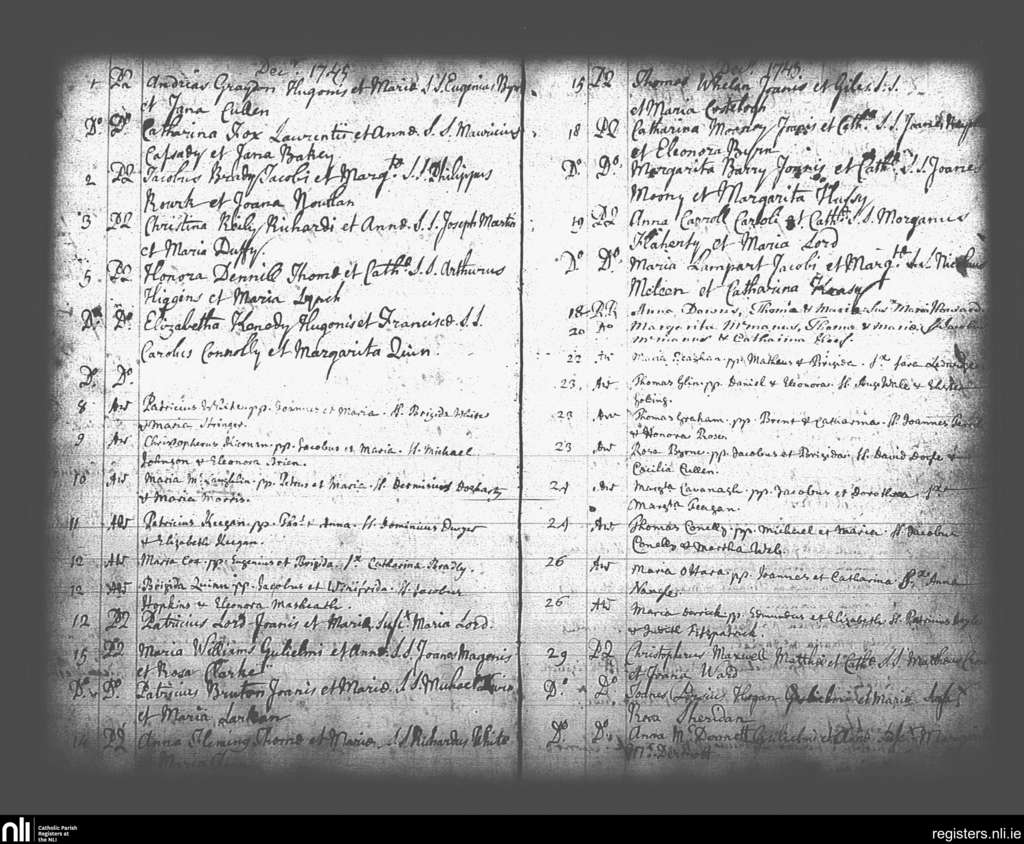 St. Andrew's, Dublin city; County of Dublin; Archdiocese of Dublin. Baptisms, Dec. 1745