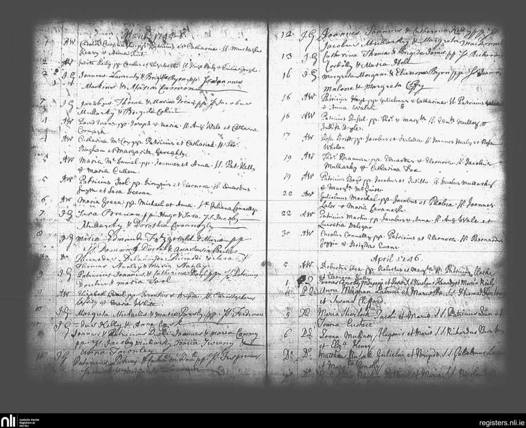 St. Andrew's, Dublin city; County of Dublin; Archdiocese of Dublin. Baptisms, Mar. 1746 to Apr. 1746