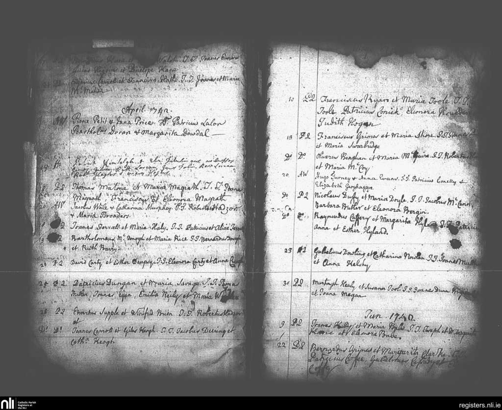 St. Andrew's, Dublin city; County of Dublin; Archdiocese of Dublin. Marriages, Mar. 1742 to June 1742