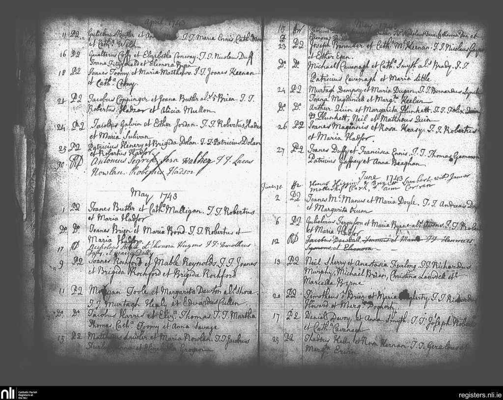 St. Andrew's, Dublin city; County of Dublin; Archdiocese of Dublin. Marriages, Apr. 1743 to June 1743