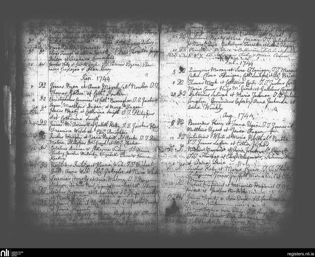 St. Andrew's, Dublin city; County of Dublin; Archdiocese of Dublin. Marriages, May 1744 to Aug. 1744