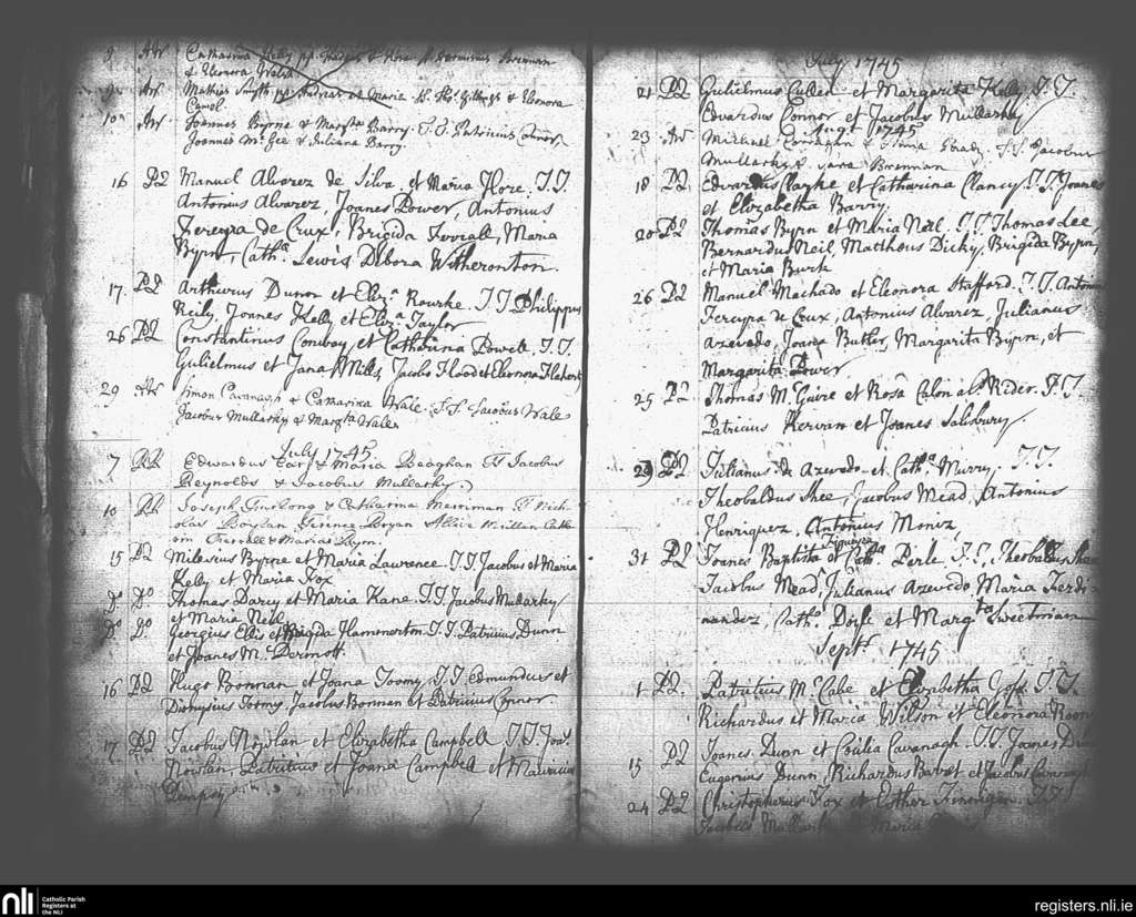 St. Andrew's, Dublin city; County of Dublin; Archdiocese of Dublin. Marriages, June 1745 to Sep. 1745