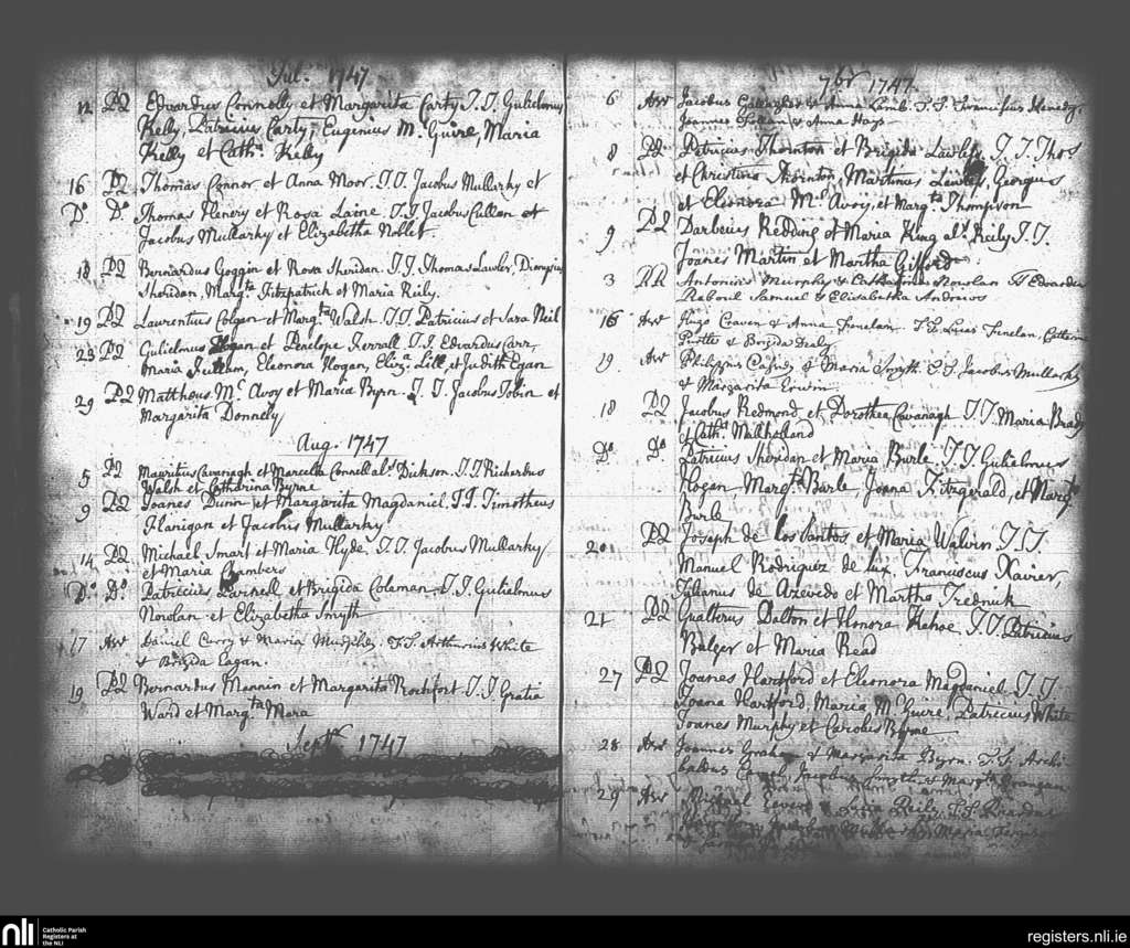 St. Andrew's, Dublin city; County of Dublin; Archdiocese of Dublin. Marriages, July 1747 to Sep. 1747