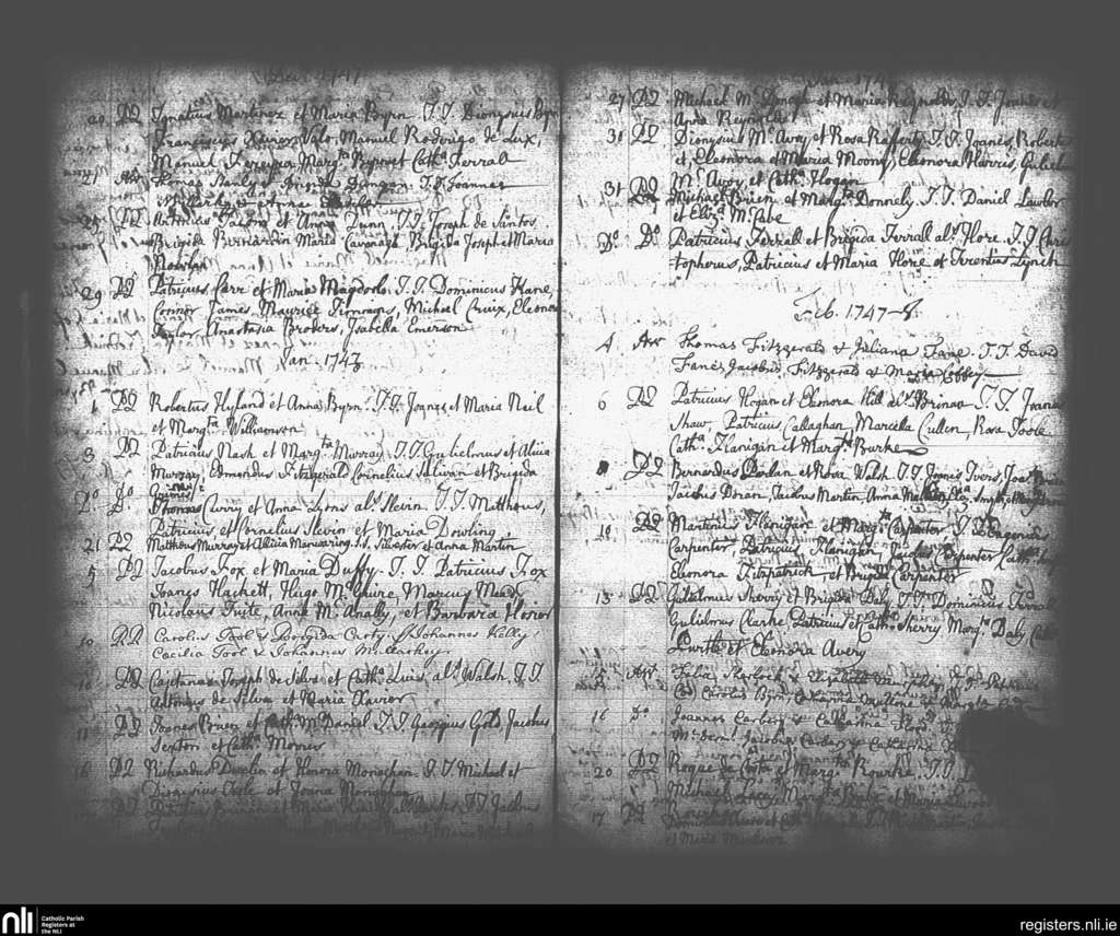 St. Andrew's, Dublin city; County of Dublin; Archdiocese of Dublin. Marriages, Dec. 1747 to Feb. 1748