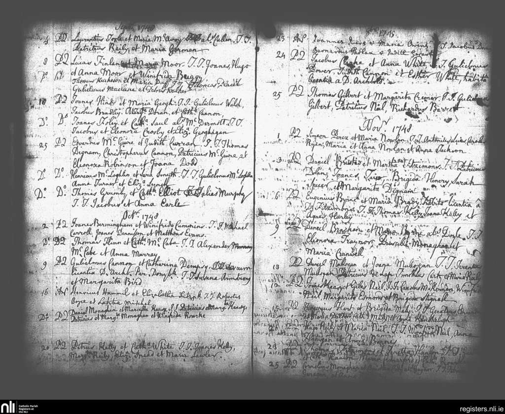 St. Andrew's, Dublin city; County of Dublin; Archdiocese of Dublin. Marriages, Sep. 1748 to Nov. 1748