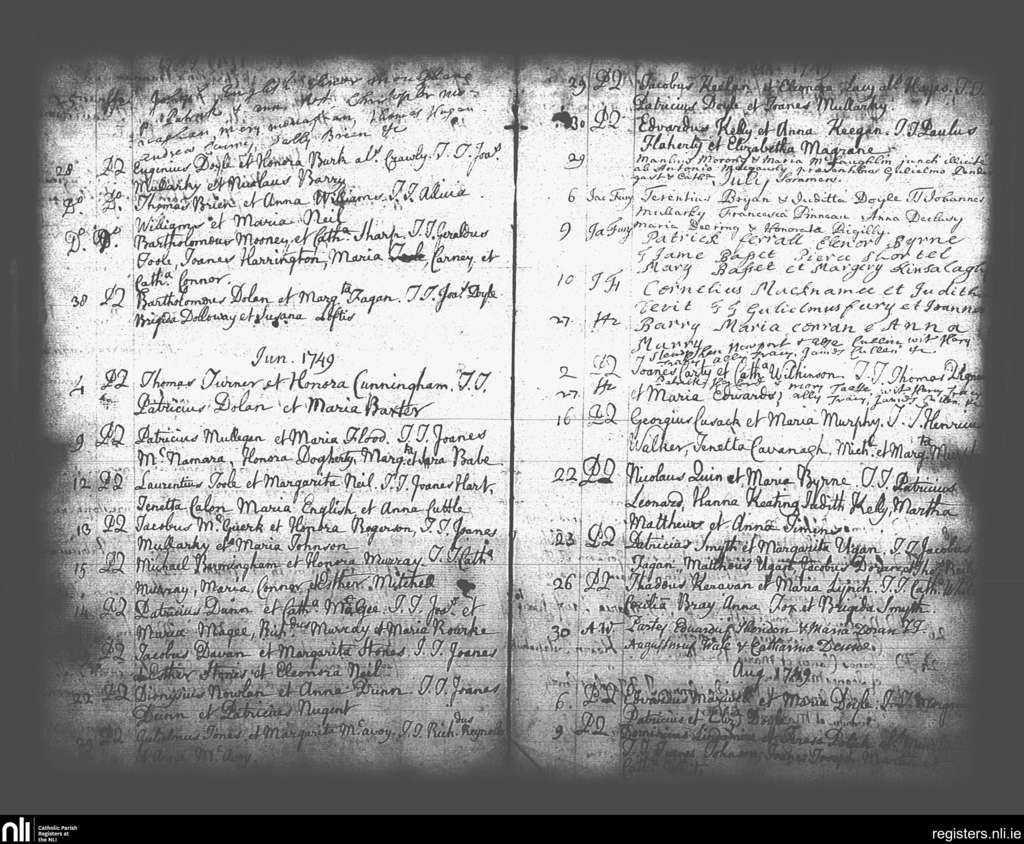 St. Andrew's, Dublin city; County of Dublin; Archdiocese of Dublin. Marriages, May 1749 to Aug. 1749