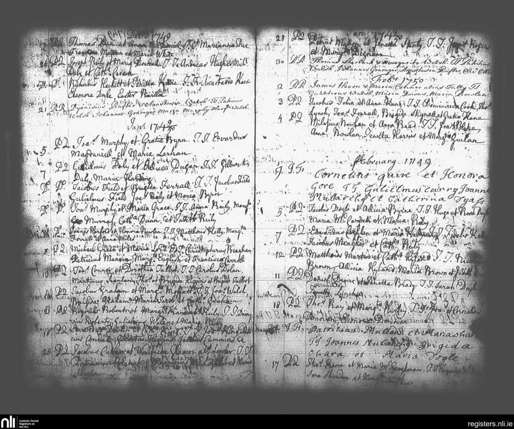 St. Andrew's, Dublin city; County of Dublin; Archdiocese of Dublin. Marriages, Dec. 1749 to Feb. 1750