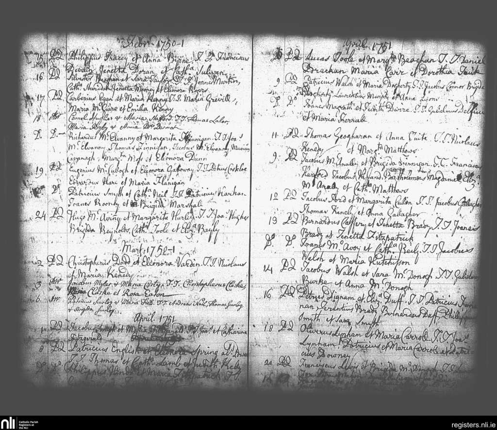 St. Andrew's, Dublin city; County of Dublin; Archdiocese of Dublin. Marriages, Feb. 1751 to Apr. 1751
