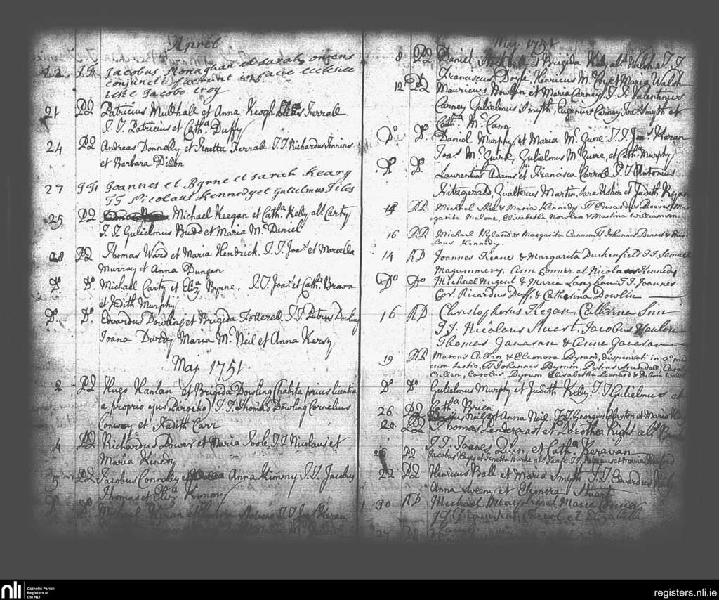St. Andrew's, Dublin city; County of Dublin; Archdiocese of Dublin. Marriages, Apr. 1751 to May 1751