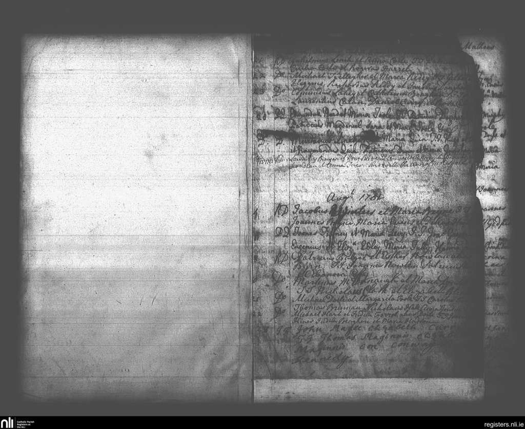 St. Andrew's, Dublin city; County of Dublin; Archdiocese of Dublin. Marriages, Aug. 1751 to Oct. 1751