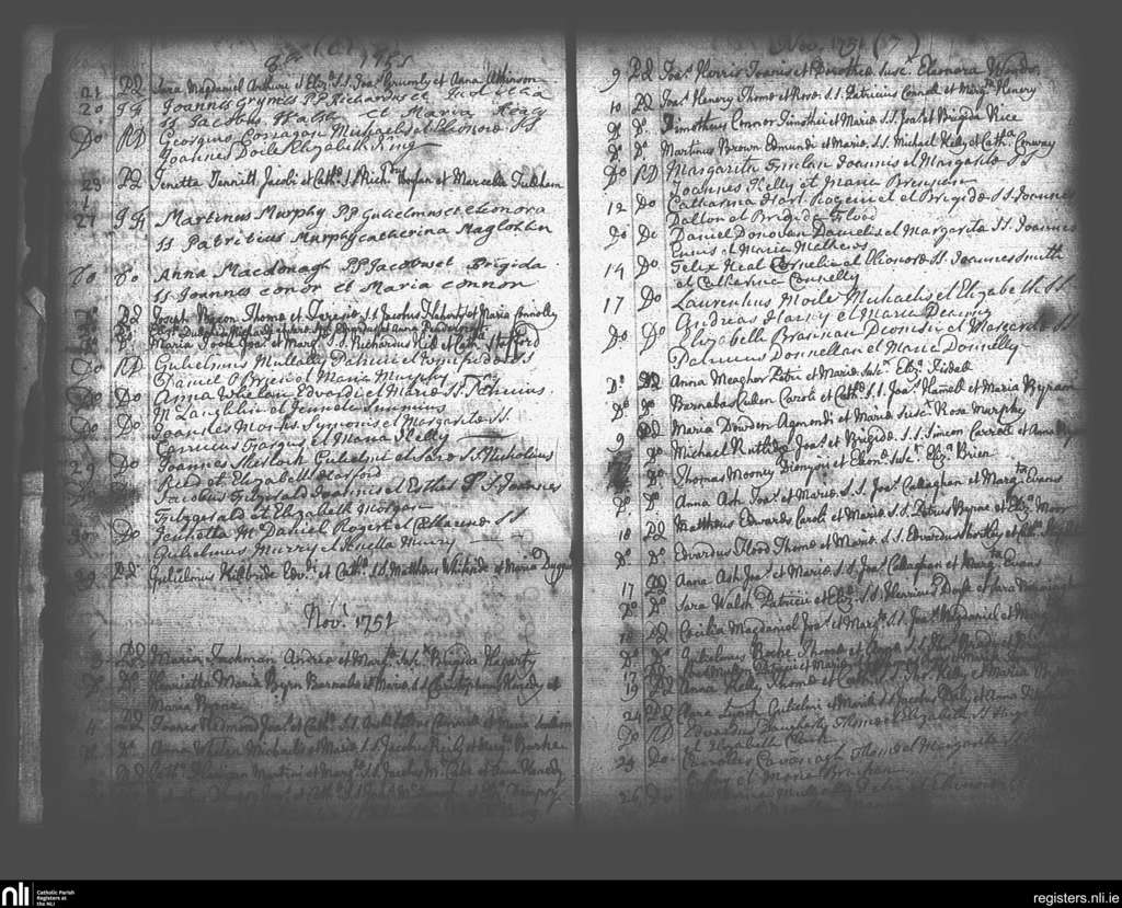 St. Andrew's, Dublin city; County of Dublin; Archdiocese of Dublin. Baptisms, Marriages, Oct. 1751 to Nov. 1751