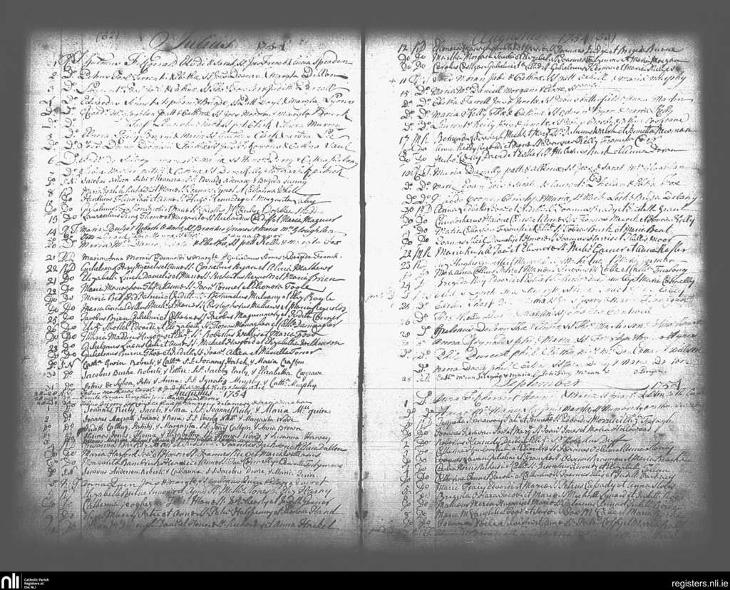 St. Andrew's, Dublin city; County of Dublin; Archdiocese of Dublin. Baptisms, July 1754 to Sep. 1754