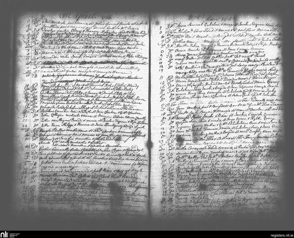 St. Andrew's, Dublin city; County of Dublin; Archdiocese of Dublin. Baptisms, Apr. 1756 to May 1756