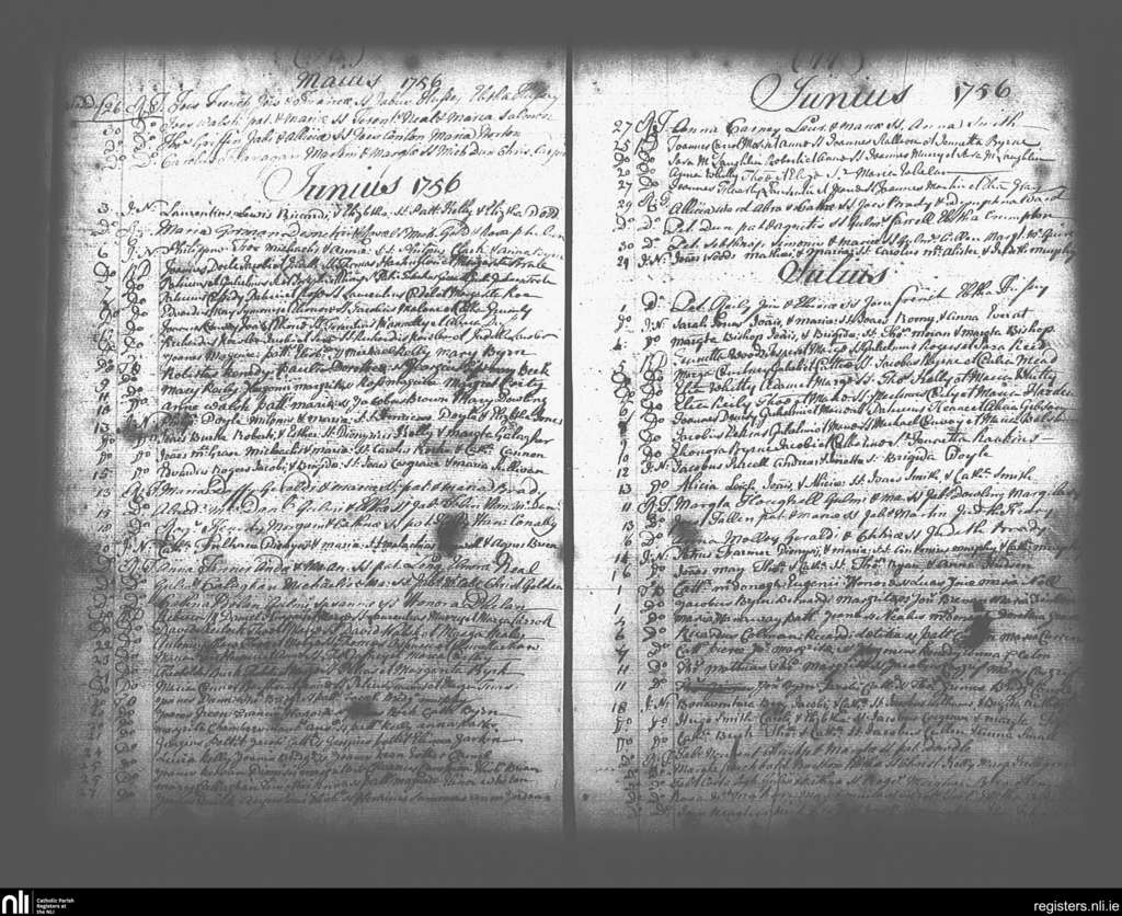 St. Andrew's, Dublin city; County of Dublin; Archdiocese of Dublin. Baptisms, May 1756 to July 1756