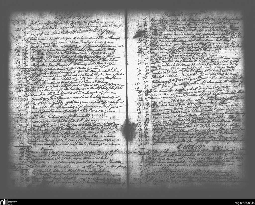 St. Andrew's, Dublin city; County of Dublin; Archdiocese of Dublin. Baptisms, Aug. 1757 to Oct. 1757