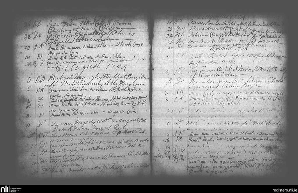 St. Andrew's, Dublin city; County of Dublin; Archdiocese of Dublin. Baptisms, July 1754 to Sep. 1754
