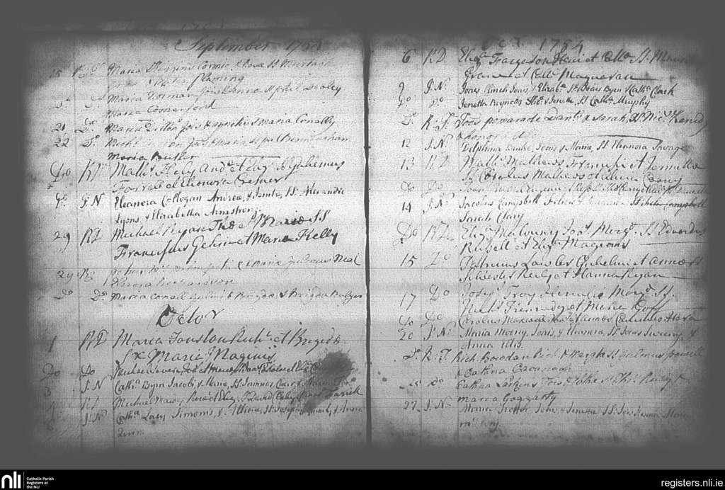 St. Andrew's, Dublin city; County of Dublin; Archdiocese of Dublin. Baptisms, Sep. 1754 to Oct. 1754