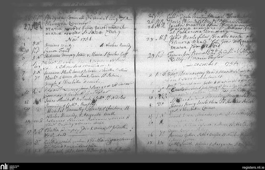 St. Andrew's, Dublin city; County of Dublin; Archdiocese of Dublin. Baptisms, Oct. 1754 to Dec. 1754